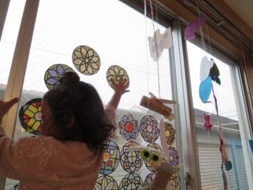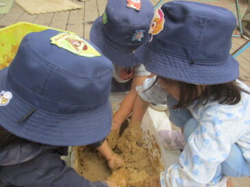 今朝は昨日の遊びの続きで、砂場では樋と水を使っての泥遊び、畑では虫探し、テラスでは折り紙などの製作など、それぞれが友だちと一緒に過ごしていた。そんな時間を大切にしたいと思い、あおぐみの時間は後でにしようと考えていた。そ […]