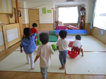 外の日が終わり、昨日は魚釣りゲームで作った魚を持ち帰りたいとのことで、自分で袋に入れて持ち帰りの準備と片付け。その後は、外の日で楽しんだあおぐみのボウリングとしろぐみの紙飛行機飛ばしと手裏剣投げなどで遊んだ。 その時 […]