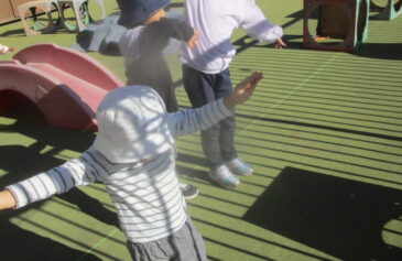 冬の寒さを感じた今朝だったが、園庭に段々と日が当たってくると、過ごしやすくなってくる。そんな園庭に寝っ転がりながら、たわいもない会話をする子どもたちの姿。 今日、しろぐみではパンダ公園に行きたいチームと園庭で遊びたい […]