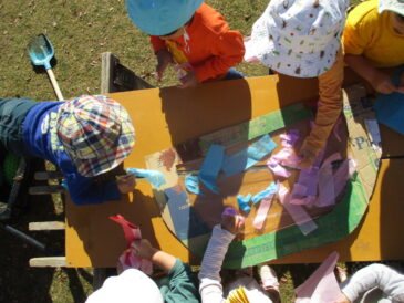 今日は、バックを作って園庭に出たら、どんな発見を集めてくるのだろうと不思議に思い、はなぐみで『なんでもバッグ』を作った。 バックはジップロックとすずらんテープで簡易的に。袋をジップロックにした理由は、集めたものを大切 […]