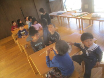 「あ〜。楽しみだな。」「明日はせいび祭りだからね。」と話している声が、あちこちから聞こえてくる。 朝には自分たちで映画館を作り、明日のダンス曲や好きな曲の合わせて踊る姿もあった。そういう遊びが自然と出てくるのは、歌や […]