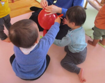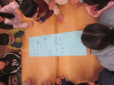 「あかさんに秘密のお願いがあるんだけど…」と切り出すと、なになに?とぎゅっと集まり興味津々。 丸くなって座っていたのだが、しばらくすると、それが歪なことに気がついた子が「これじゃ、丸じゃなくて四角だよー。」と声を上げ […]