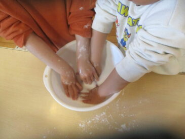 前回の寒天ゼリーに引き続き、今日は片栗粉で感触遊び。 ボールに片栗粉を入れて触ってみると、 「うわー、これって雪じゃない?」「フワフワだ!」「気持ちいいー。」と、片栗粉はしっとりと気持ちよくその感触に夢中になってい […]
