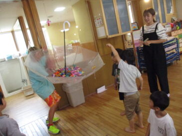あかぐみのとり(5歳児)の子どもたちと、外の日について話をした。「4が外の日でしょ?」「あと少しだよね。」「楽しみ!」「早く外の日になればいいのにね!」と心待ちにしている。 まずは、宝探し→氷おに→手裏剣ゲームという […]
