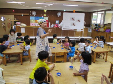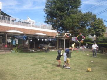 昨日、園庭で外の日をやってみたのだが、当日が雨予報に変わってしまった。そのことを伝え、雨ならどうするかを相談。 まずは、場所。せいびの中で1番広い場所はホールだと気づき、今までホールで遊んでいたこともあり、雨の場合は […]