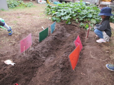 冬野菜を植えようと耕していた畑。土が「ふわふわだ!」と感触を裸足になって楽しんだり、お団子作りをしたり、しばらく土遊びを楽しんできた。 そしてそろそろと、先日しろぐみとうみの数名で種を買いに行ったり(10/29)、ど […]