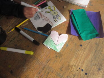 迷路を作っていると、「ここをくぐるんでしょ?」「これくらいで足りるよ」「ダンボールで壁作りたい」とそれぞれのイメージが異なっていることがわかってきた。 同じグループ内でイメージを統一しなければ、作っていくうちにさらに […]