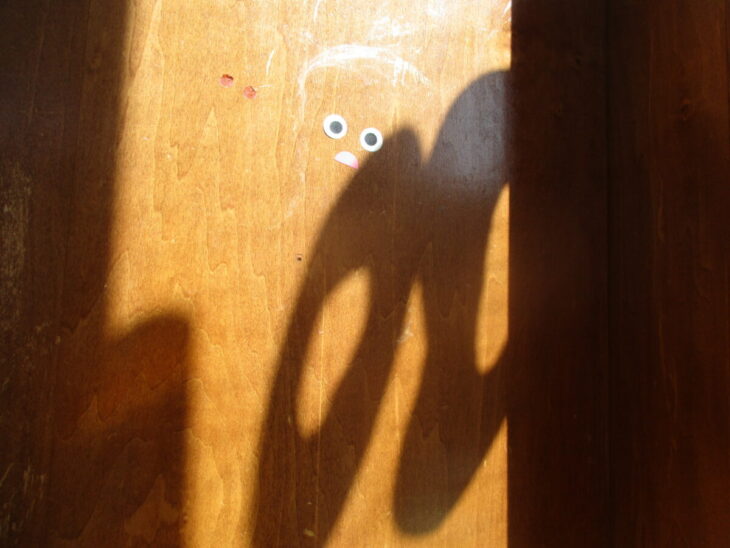 そんな遊びが一段落ついた頃、ふと壁にあったお化けに目をやると、「なんか動いてない?」とその位置や形が変化していることにも気づいていく子どもたちだった(9月22日「影って動くの?」)。