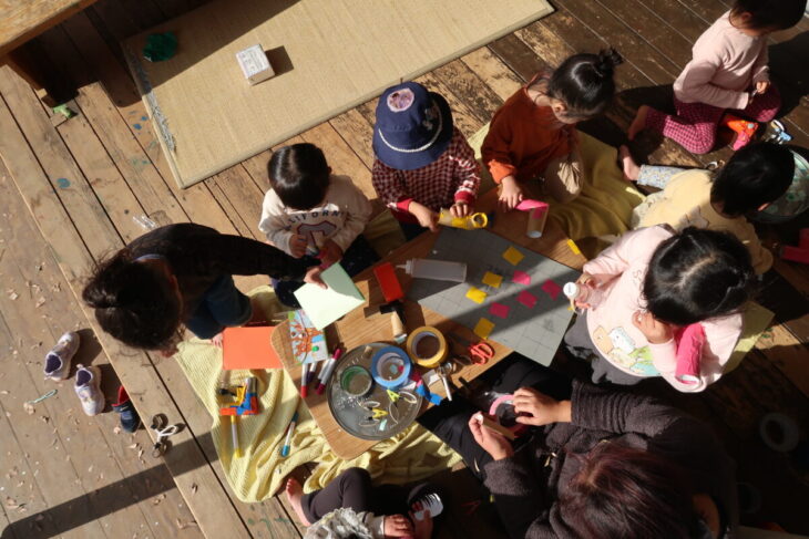 とうに、せいびまつりも終えたというのに、「踊りたい!」というリクエストにあの日の曲を流し始めると、年齢を問わず、いつの間にか子どもたちが集まってくる。音の力はすごい…と保育者。