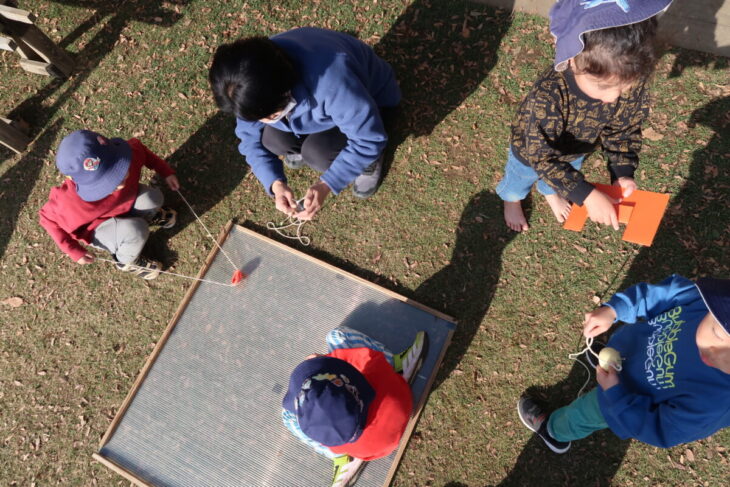 夏のテラスのキッチンで、子どもたちと畑で取れた野菜を洗っていた時、偶然、蛇口にナスがくっつくと水が勢いよく飛び散ることに気づいたRくん。そのうちに、面白がってわざとやるように。それに気付いたJくんも、同じように水を飛ばす。「水浸しになるからやめてよ。」と言うと、「わざとじゃないよ。」「そうだよ、野菜洗ってるだけだもん」と2人。私もわざと野菜を蛇口に押し付け、2人に水を飛ばし、「わざとじゃないよ、野菜洗ってるだけ」と言うと、2人も負けじと応戦してくる。