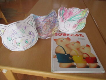 今日の空はねずみ色。大きな窓から外を仰ぎ見ると、「何か雨降りそうじゃない?」「くらいよね」「屋根の下で遊べばいいんじゃない?」と言いながら、園庭へと駆けていく。 園庭に降りるとすぐに「オオカミだ!!」「先生!オオカミ […]