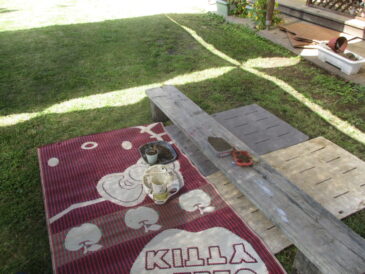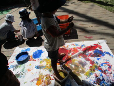 日向にいると暖かく、日陰に入ると少し涼しい。ようやく秋を感じる陽気になってきた。 子どもたちと相談し、今日は外で思い切り絵の具で遊ぶことに。 アトリエに模造紙を広げると、そのままでは風で吹き飛ばされてしまうことに気 […]