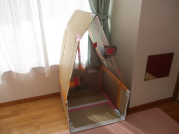 今日は、朝からかぜ(3〜5歳)の部屋で過ごすことにすると、「やったー!今日は、ずっと下で遊ぶの?」とはなぐみ(2歳児)の子たちは嬉しそうにままごとや、製作コーナーで、好きな遊びを見つけ遊び出す。 「ダンボールで何か作 […]