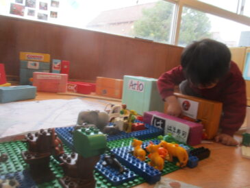 昨日の夕方、白鳥先生と一緒に街を作って遊んだようで、ブロックコーナーに堀之内駅やスーパー、新宿駅などが残っていて、昨日のワクワク感や楽しさが伝わってきた。 それを見て、「ねぇ、先生、ここに電車を走らせる?」と声がかか […]